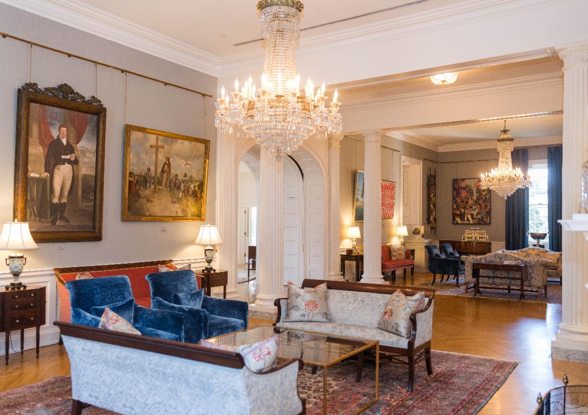 - Un retrato casi de tamaño natural del marqués de Lafayette, que recuerda su papel fundamental en la Revolución Americana y su célebre visita 1824 a la Mansión Ejecutiva de Virginia.